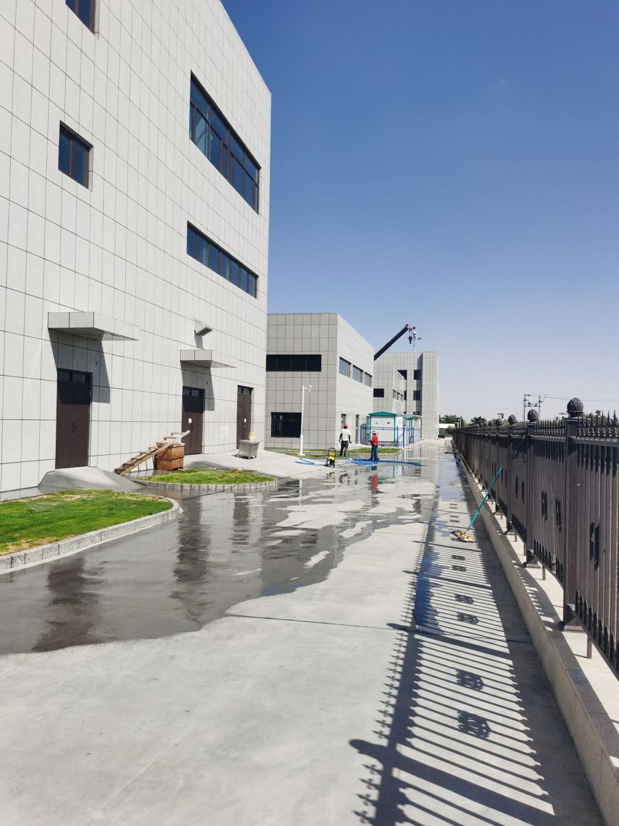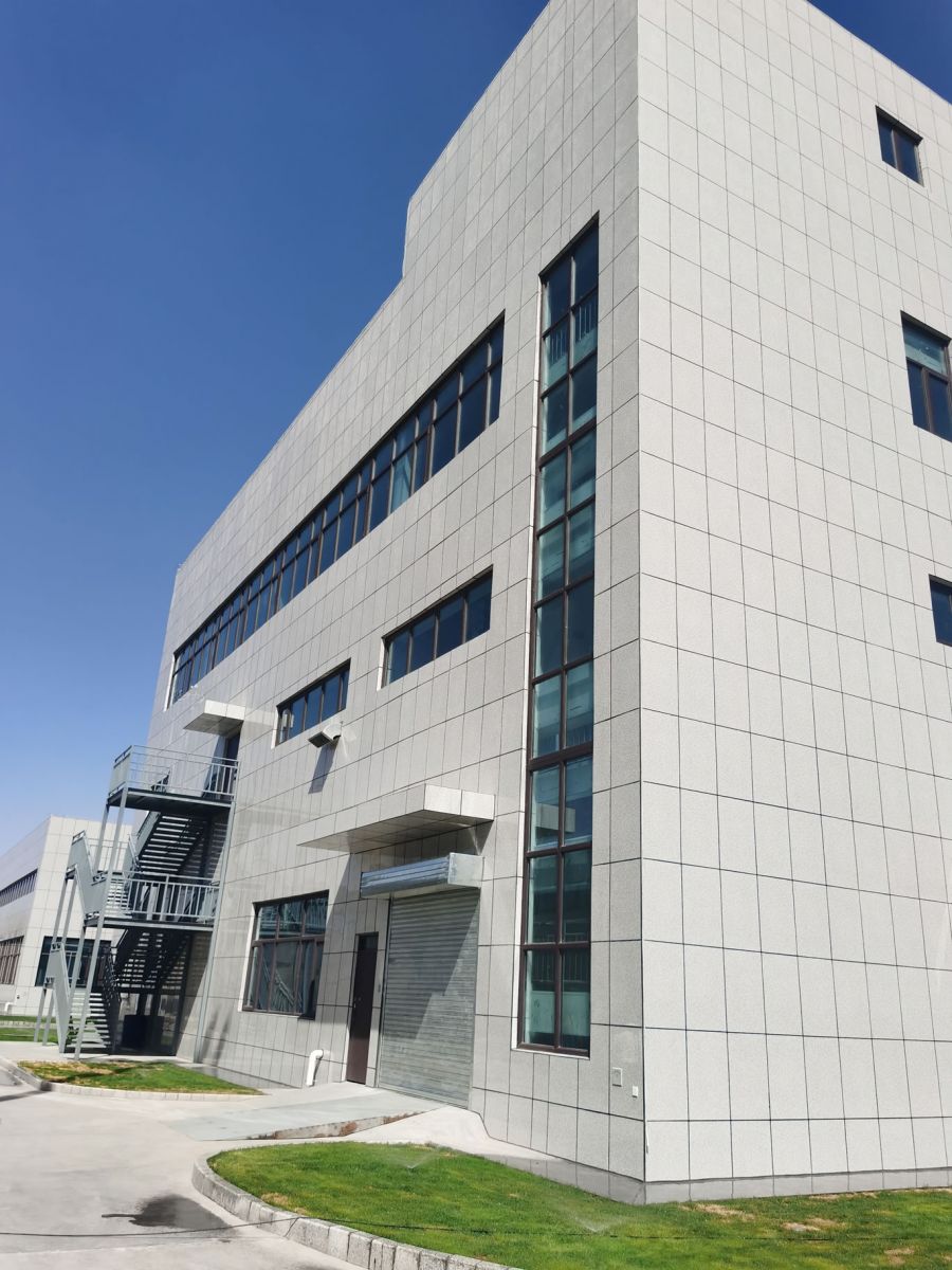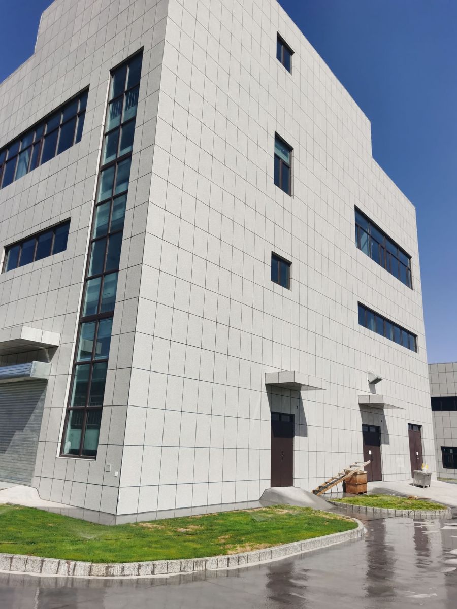 建筑外立面使用白色系全拋陶瓷薄板產品鋪貼裝飾,