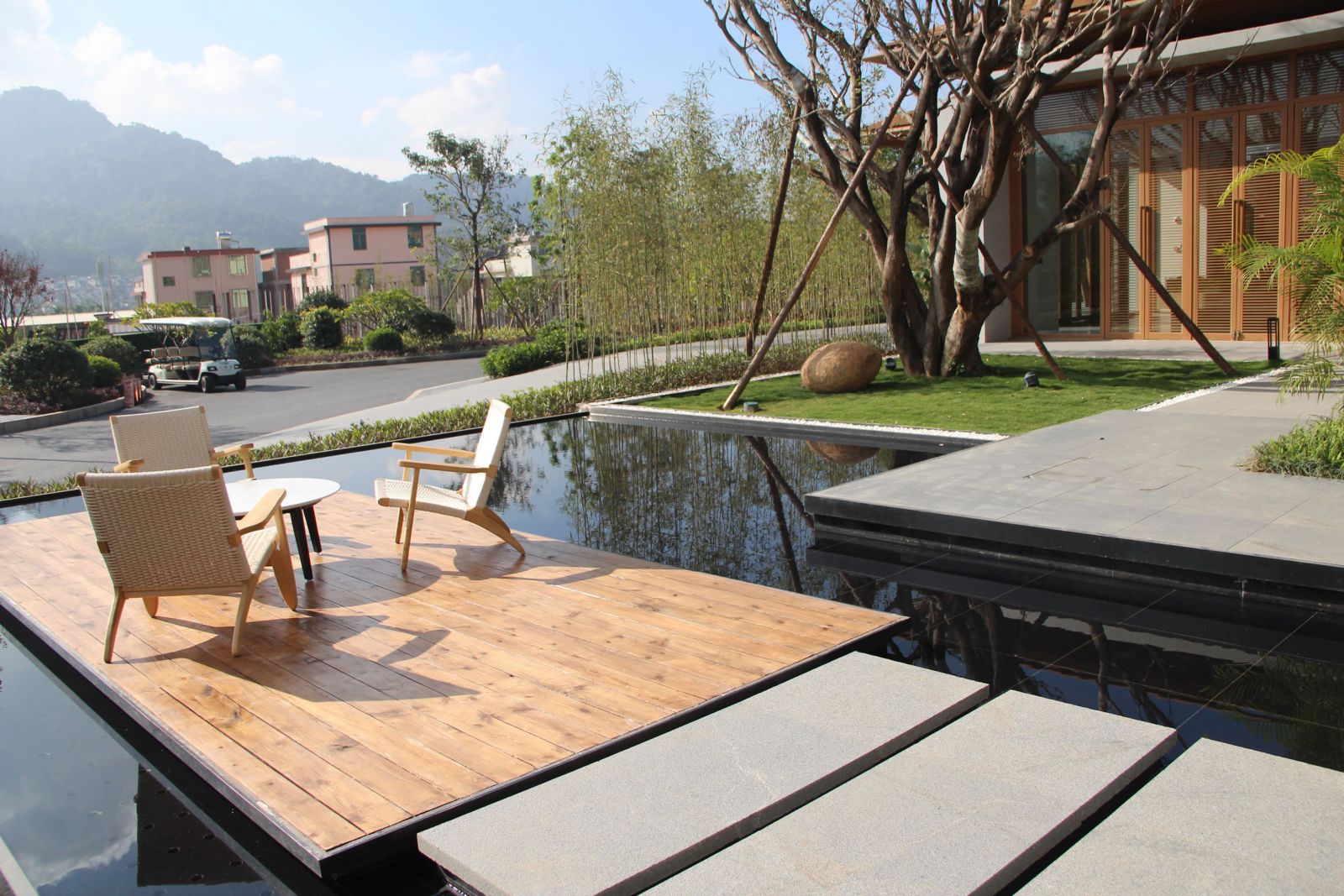 區(qū)域內(nèi)廣場、水景、汀步及別墅庭院采用協(xié)進(jìn)地鋪石瓷磚裝飾,