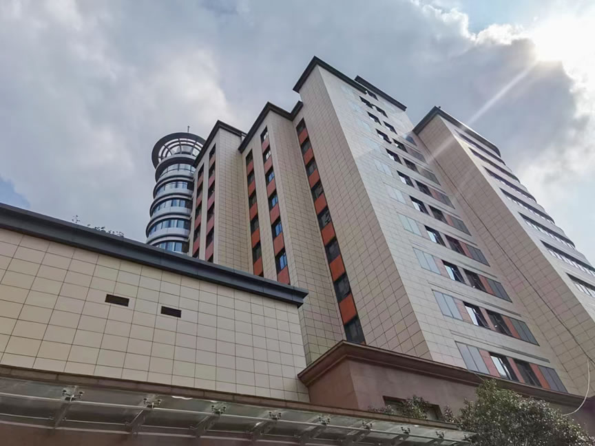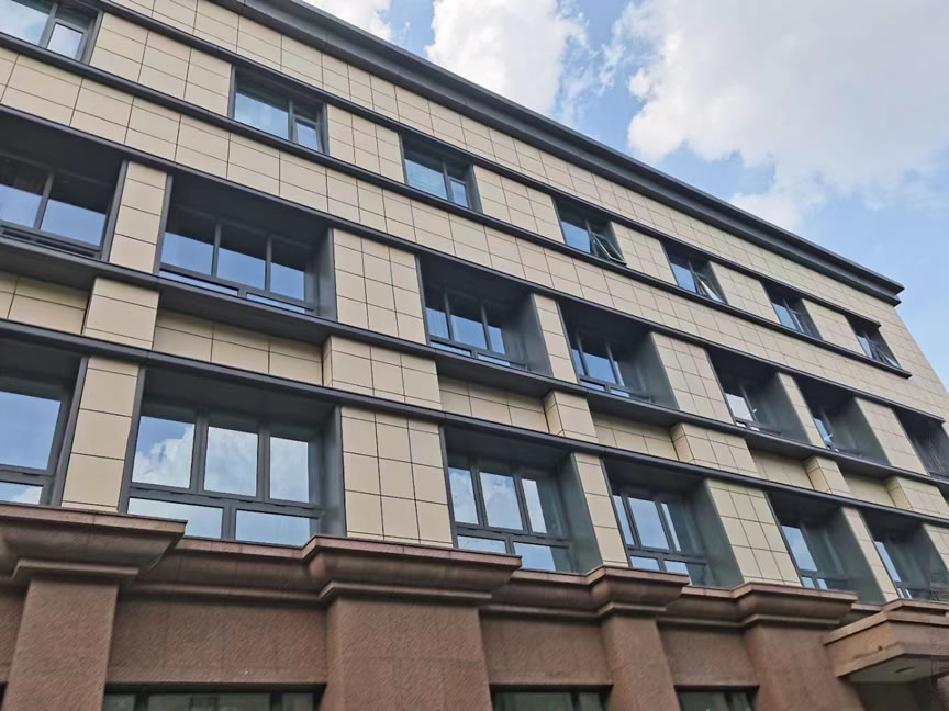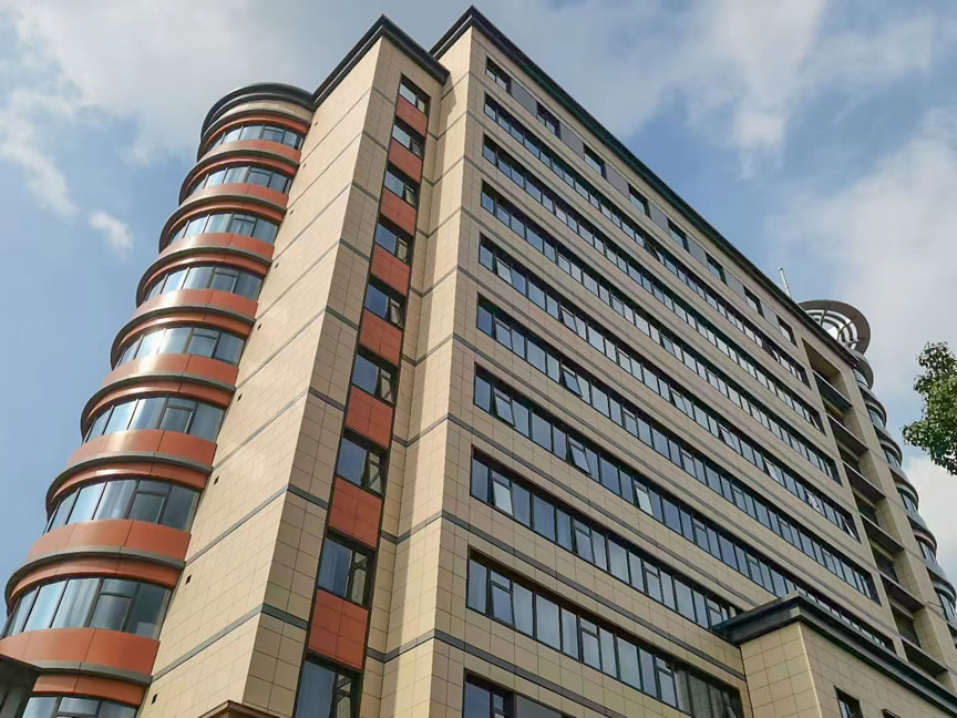 醫院外立面使用協進純色陶瓷薄板鋪貼。