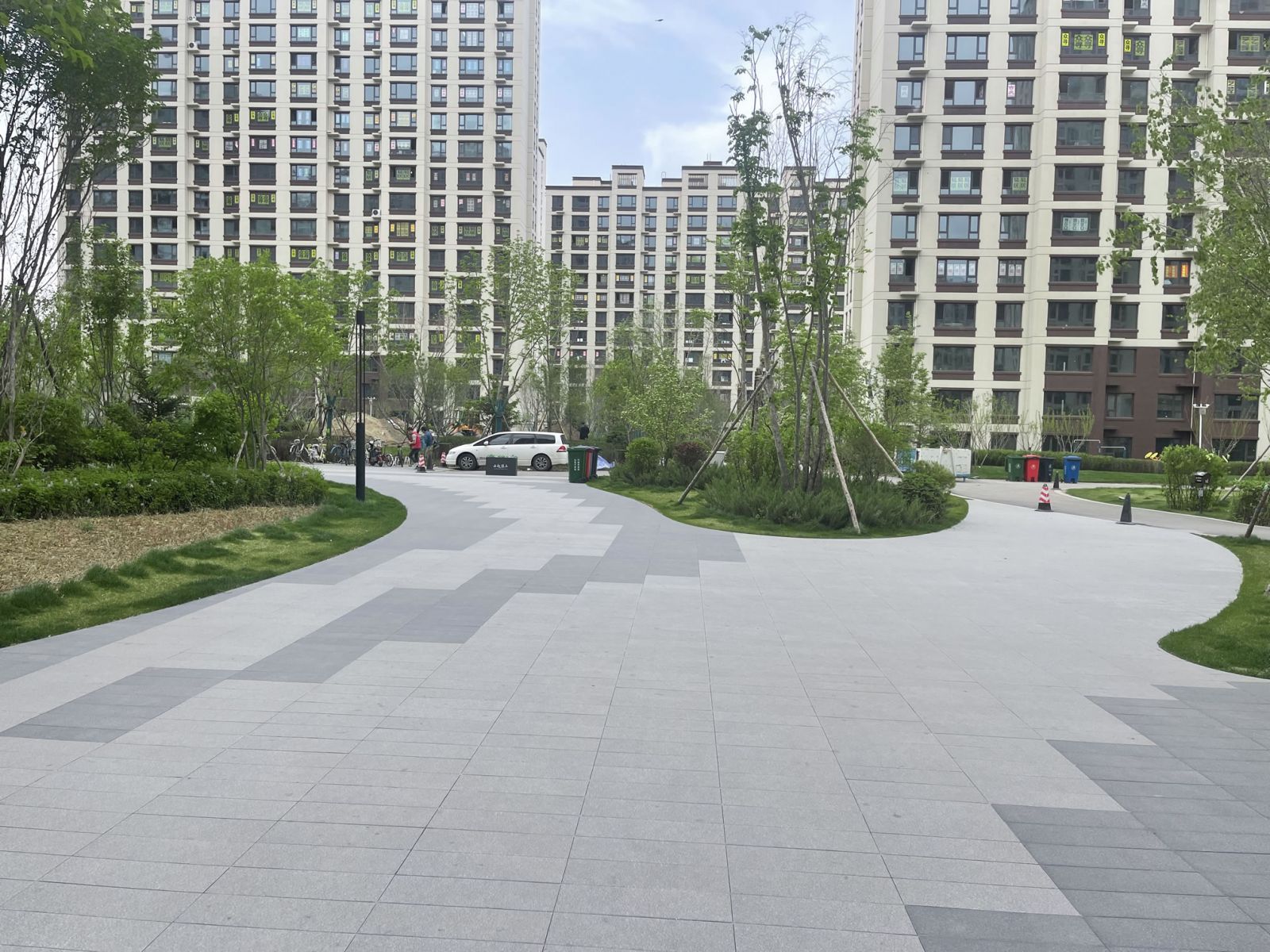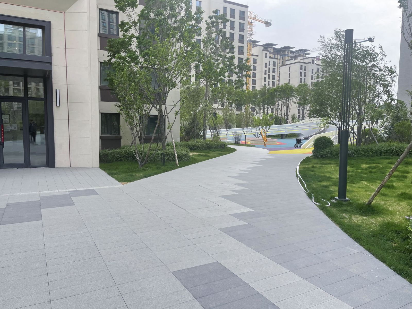 使用200*600芝麻灰、芝麻黑地鋪石瓷磚鋪貼,