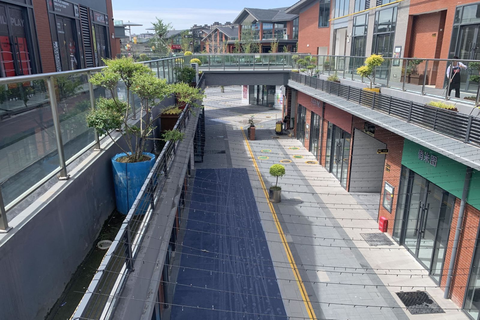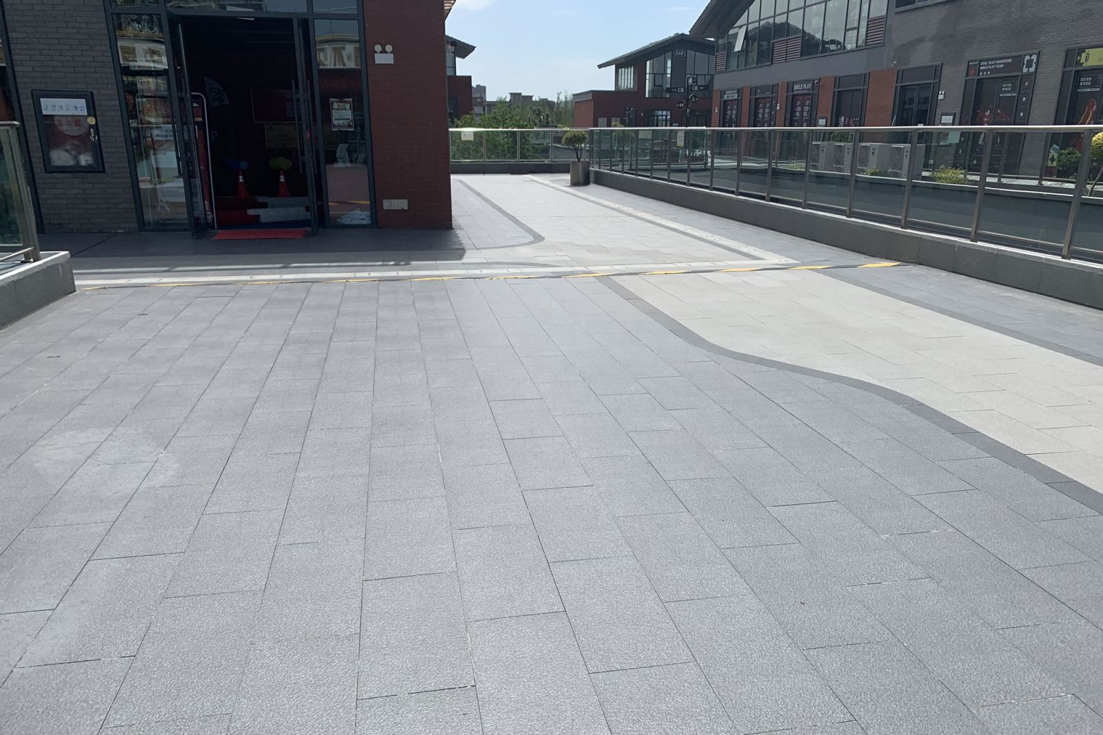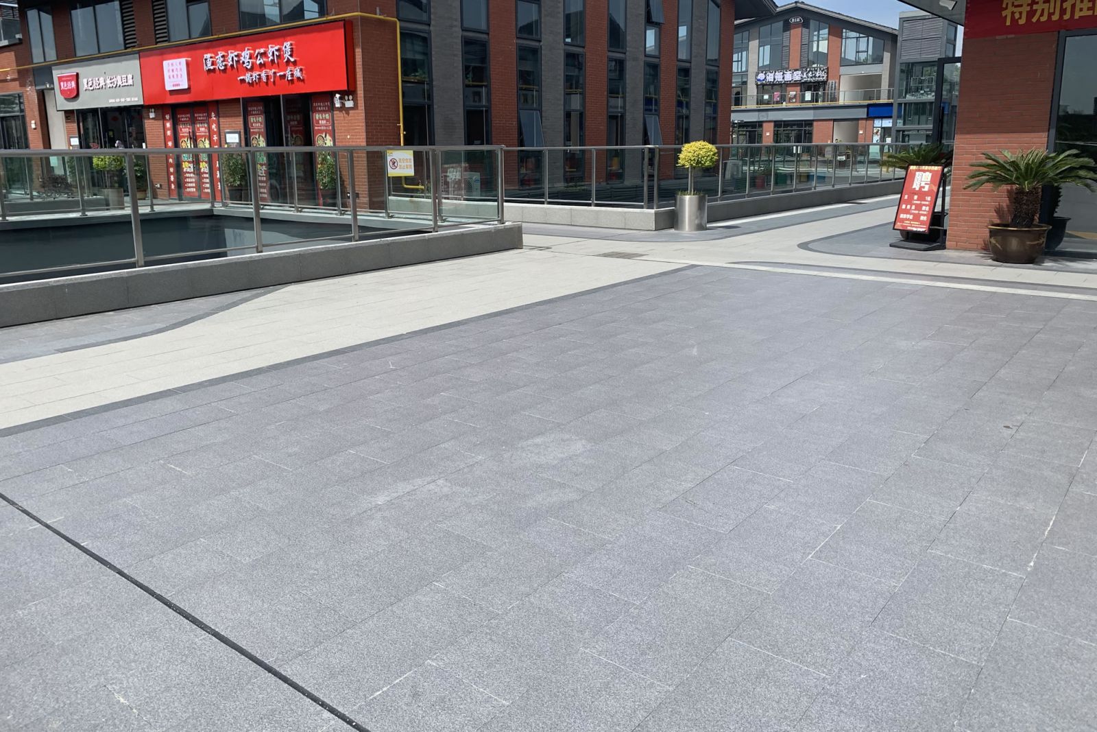 商業街樓上樓下使用協進地鋪石瓷磚鋪貼,