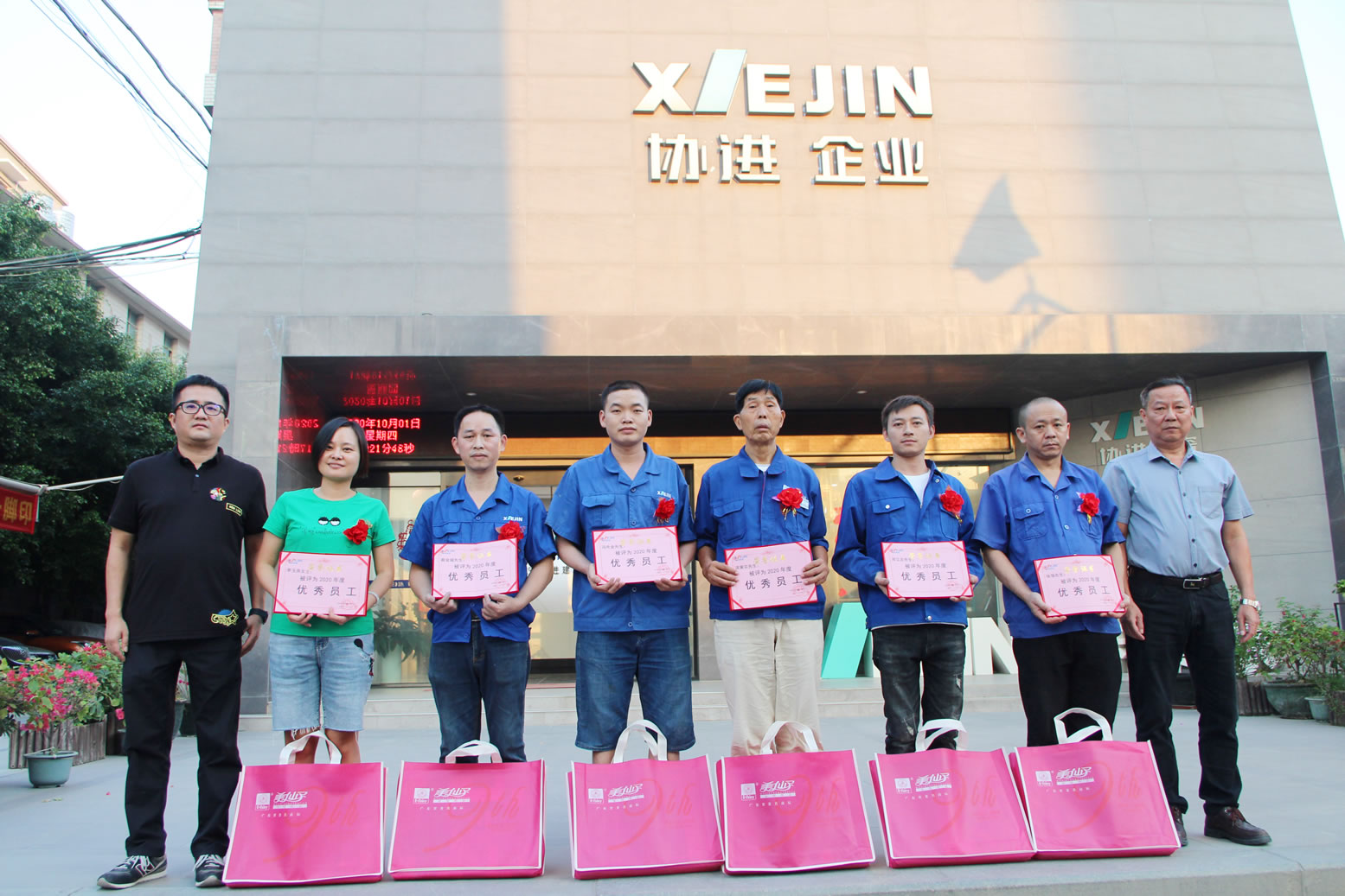 王少華總經(jīng)理等公司領(lǐng)導(dǎo)為34名2020年度優(yōu)秀員工頒發(fā)獎(jiǎng)狀獎(jiǎng)品,借此感謝全體協(xié)進(jìn)人一年來的辛勤勞動(dòng),同時(shí)祝愿偉大的祖國繁榮昌盛、國泰民安。