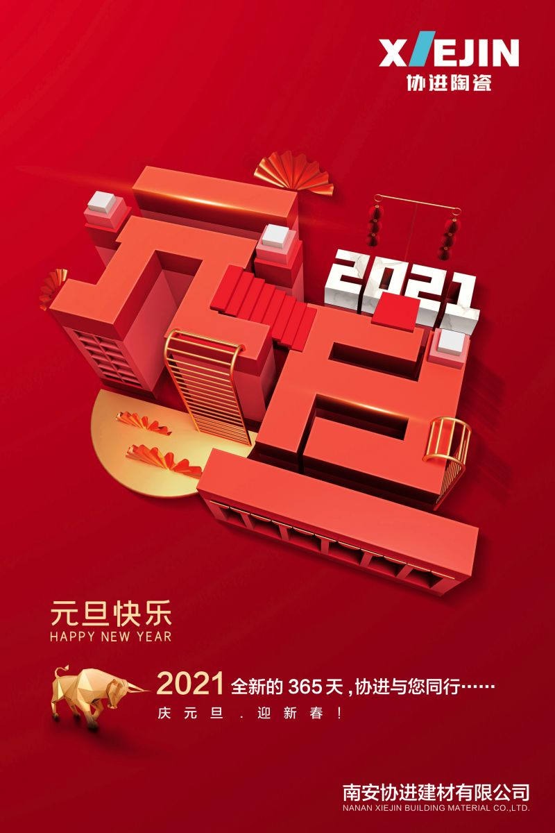 值此2021年元旦到來之際,協進陶瓷祝全體員工、新老客戶、全國人民新年快樂、身體健康、萬事如意、闔家幸福!