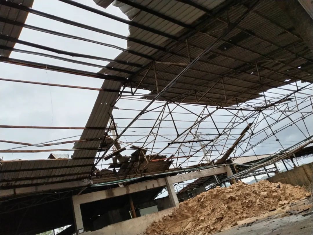 此次臺風從晉江沿海登陸時風力達15級,之后又連降暴雨,造成公司廠房屋頂、設備等不同程度受損,車間與倉庫一片狼藉,廠區及周邊的樹木大部分被吹倒。在防汛抗臺過程中,協進公司按照各級政府的工作部署與要求及時停工停產,全體主管積極帶領相關人員,不怕辛苦,克服困難,適時加強相關防范與搶救措施,把損失降到最低。當前,協進人正努力組織投入自救,搶修廠房、檢修各種設施設備,爭取早日恢復生產經營。