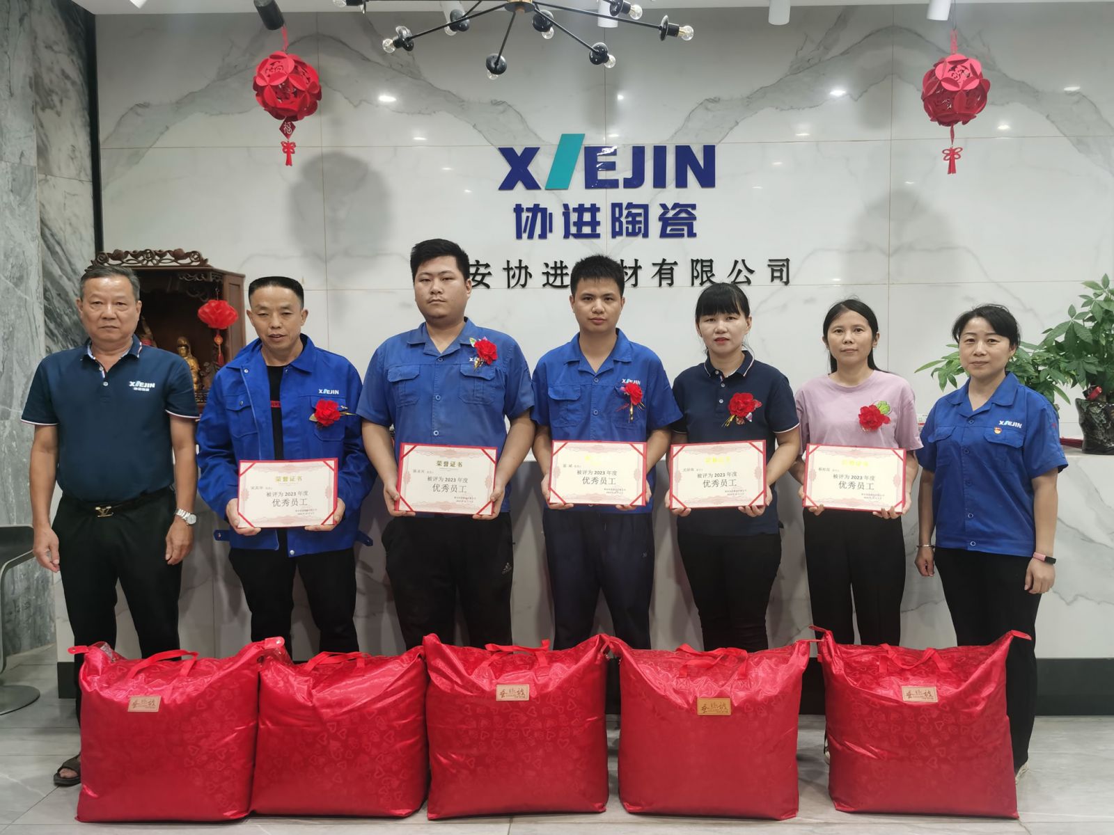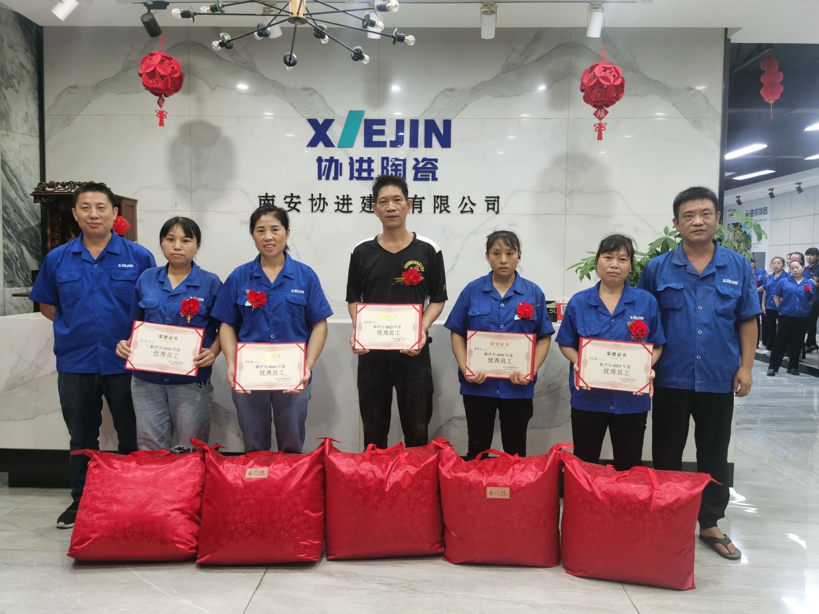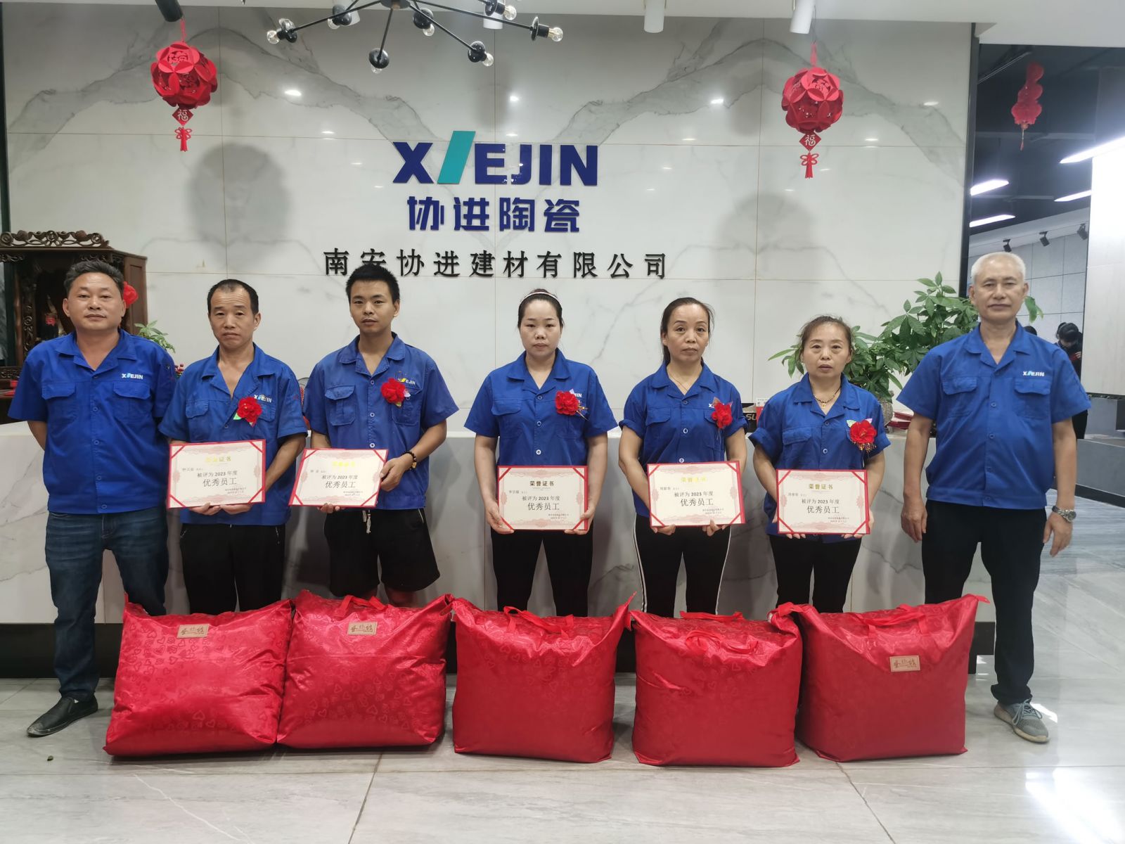 王少華總經理等公司領導為30名2023年度優秀員工頒發獎狀獎品,借此感謝全體協進人一年來的辛勤工作,祝福偉大的祖國繁榮昌盛、國泰民安。