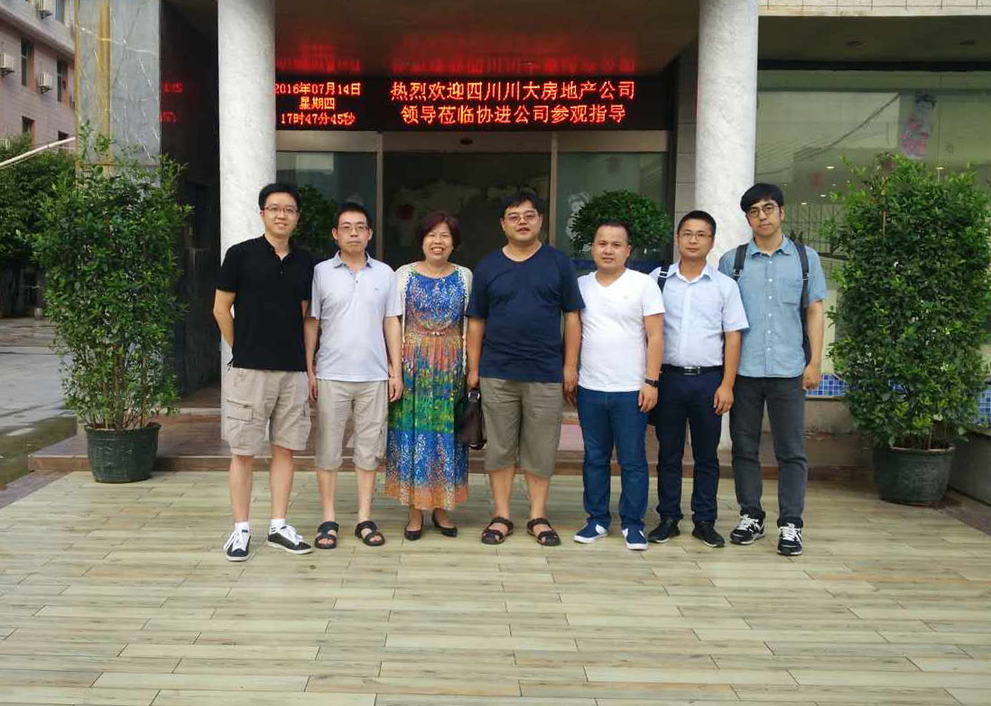 2016年7月14日下午,四川川大房地產公司領導一行四人赴我協進公司參觀考察。我司楊副董事長、營銷中心林副總及成都經營部但經理熱情接待了來訪貴賓。首先參觀了公司展廳,了解公司的常規產品及陶瓷薄板、古典藝術磚、地爬墻仿古小地磚等特色產品,隨后在會議室進行公司概況的介紹和產品知識、成功案例的交流。
