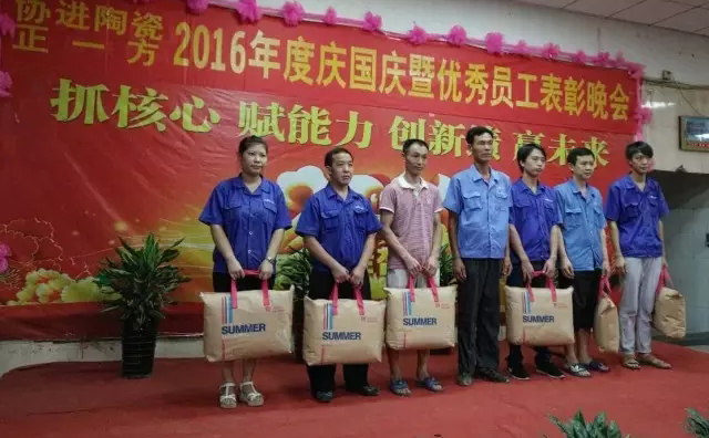 王家助董事長在表彰會上與協進家人們分享了公司創辦的難忘經歷和創業感悟;客觀指出建筑陶瓷行業及企業面臨的困境,直言協進公司經過二十余年發展沉淀下來的優秀企業文化和生產經營優勢,堅定企業今后一段時期轉型升級的發展發向,激勵全體協進人不忘初心、繼續“抓核心、創新績”,贏取新未來!