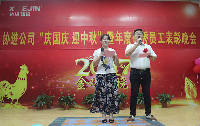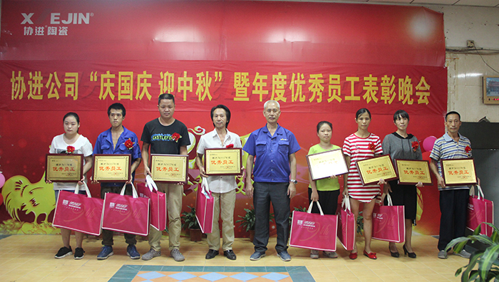 9月29日晚,金秋送爽,星空璀璨,協(xié)進(jìn)廠區(qū),華燈輝映,彩旗飄揚(yáng)。為了慶祝即將到來的中華人民共和國68周年華誕,喜迎中秋佳節(jié),同時(shí)為了表彰先進(jìn)、樹立榜樣,鼓勵(lì)“人人爭當(dāng)模范”的工作激情,弘揚(yáng)“正品、精工、盡美、至善”的企業(yè)理念,倡導(dǎo)“攜手創(chuàng)輝煌,創(chuàng)新求卓越”的協(xié)進(jìn)精神,協(xié)進(jìn)陶瓷2017年歡度國慶喜迎中秋暨優(yōu)秀員工表彰文娛晚會(huì)在公司禮堂隆重舉行。